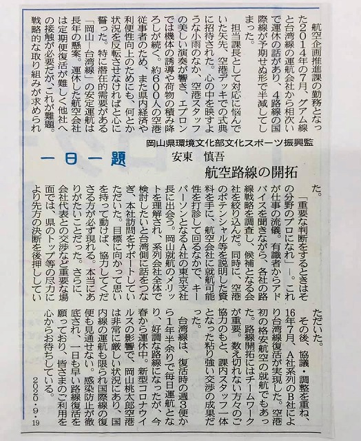 県議会棟に入りました。記事は山陽新聞夕刊です。