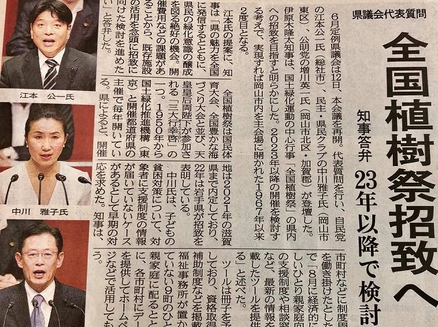 『全国植樹祭』招致!嬉しい。県北で出来たら、なお嬉しいなぁ。