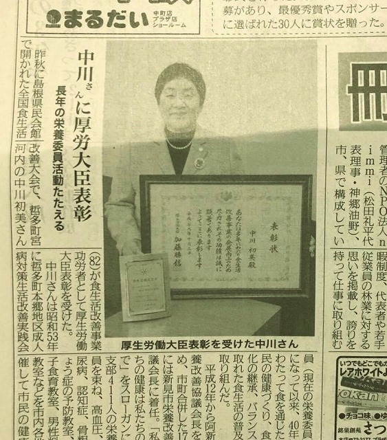 中川さん、おめでとうございます。地域紙「備北民報」です。