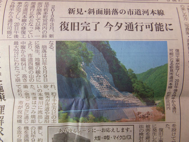 続いて、今日のニュースになっていた復旧完了カ所の視察を行いました。難工事だったとお聞きしました。