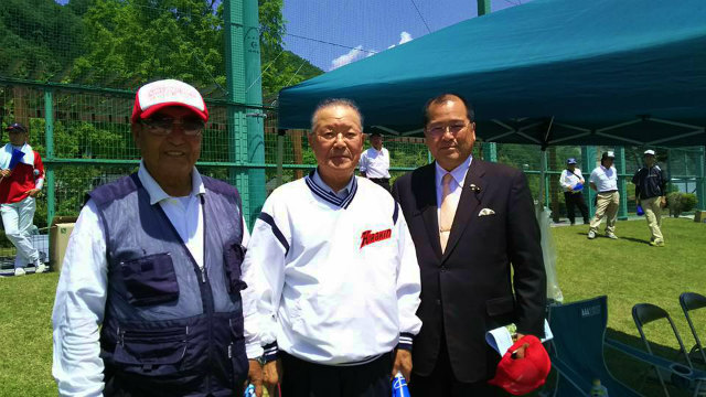 お世話になっている平林金属株式会社の平林会長が応援に来ておられましたので、ご挨拶の後、ハイポーズ。ご子息の平林社長にシャッターを切っていただきました。ありがとうございました。