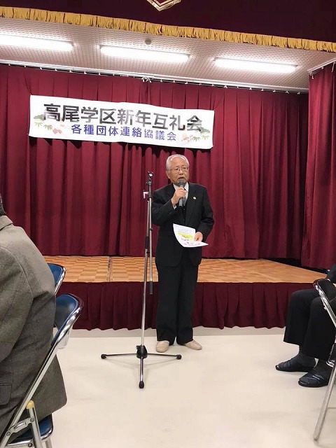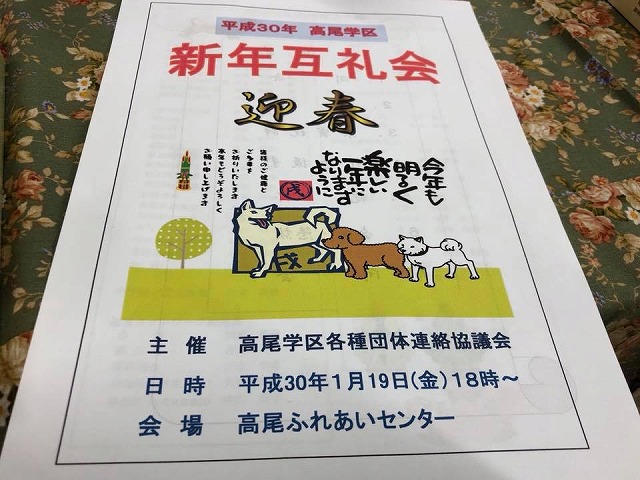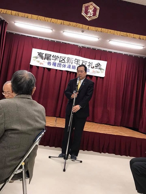 18時から「高尾ふれあいセンター」で開催された『平成30年高尾学区新年互礼会』に出席しました。ありがとうございました。