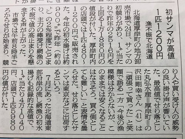 いつの間にか高級魚のサンマを、今朝の日本農業新聞が伝えている。