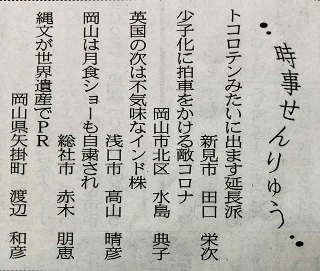 山陽新聞「時事せんりゅう」です。同級生田口栄次くん、158回目です。凄いなぁ。
