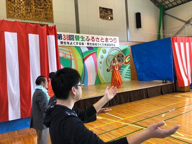 続いて、「旧菅生中学校体育館」で開催された『菅生ふるさとまつり』に出席しました。おめでとうございます。和気あいあい、まさに地域のお祭りです。ありがとうございました。