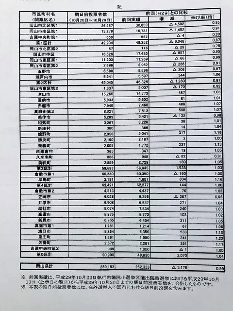第49回衆議院議員総選挙の期日前投票状況(10月29日現在)が公表されました。