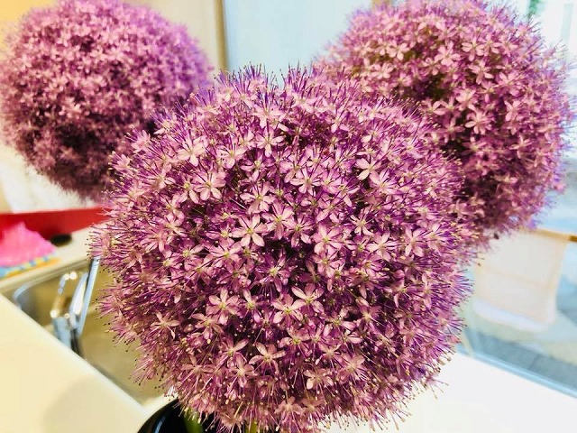 「きらめき広場・哲西」の図書館に飾ってあった「ミッキーマウス」(笑)、この花の名前が分からなかったので、教えて頂いた。「アリウムギガンティウム」と言うそうだ。