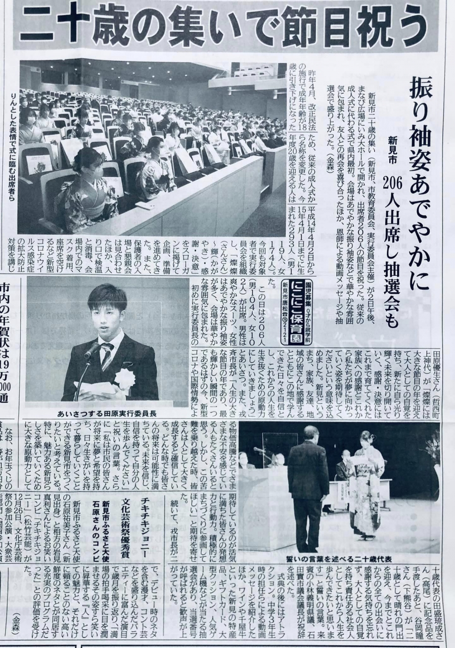新見の地域紙「備北民報」が、「令和4年度新見市二十歳の集い」のニュースを伝えている。