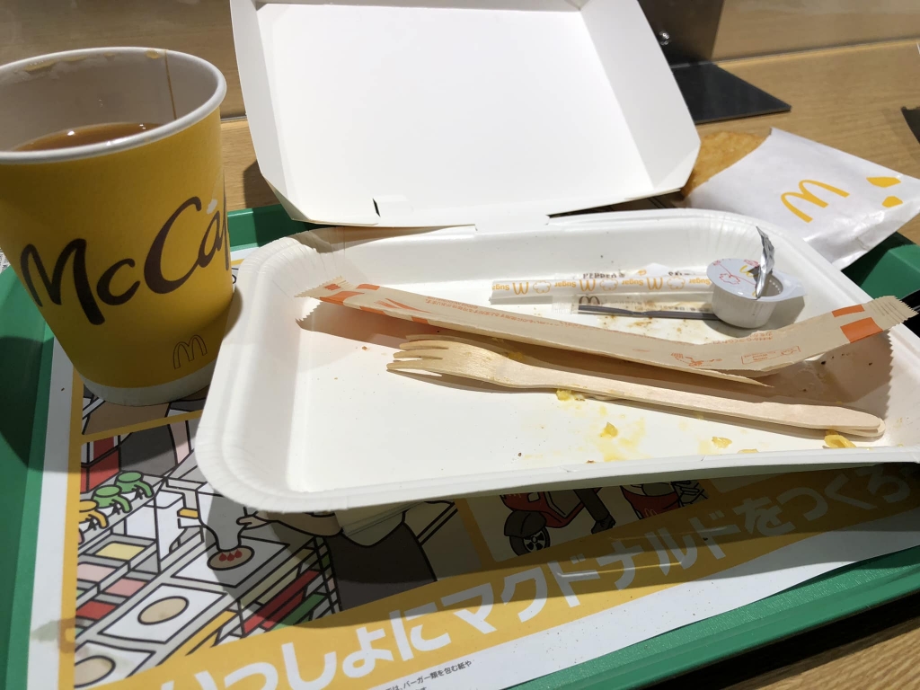 岡山駅で朝マック。本日もよろしく願します。頑張りましょう。