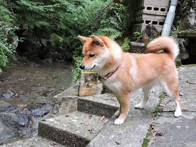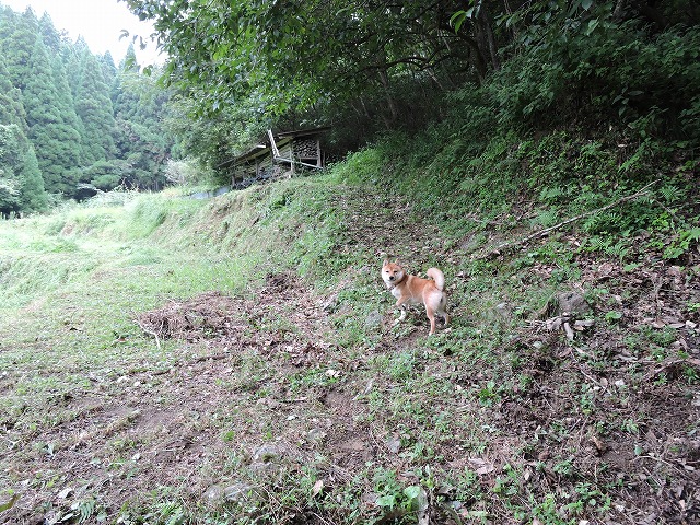 山の風が冷たく感じる「朝のお散歩」であります。イノシシは出たようですが、サルの群れは去ったようです。小林ふく、余裕のお散歩です。しかも堂々と。