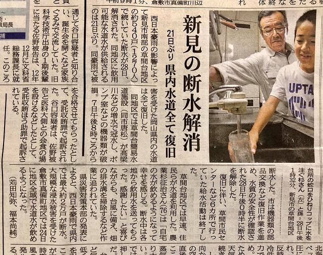 多くの皆様のご支援を頂いた草間・土橋・足見地区、21日ぶりに「飲用可能な水道水の供給」が始まった。ありがとうございました。