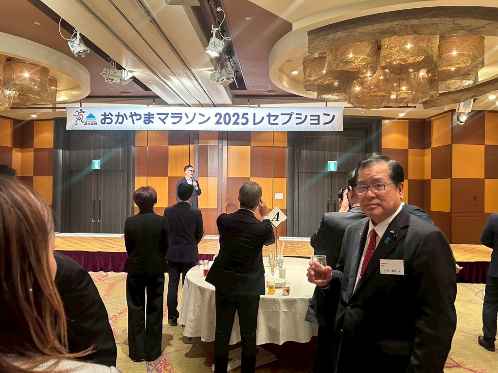倉敷市へ移動して、意見交換会。その後、県議会棟へ移動。17時から、岡山市内のホテルで開催された『第9回おかやまマラソン2025レセプション』に、副議長として出席しました。