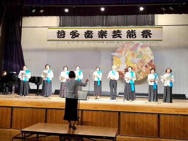 12時30分から、「哲多総合センター」で開催された『第26回哲多音楽芸能祭』に出席しました。9団体100名の皆様がご出演と伺いました。地域の力ですね。おめでとうございます。開会行事で、一言ご挨拶を申し上げました。ありがとうございました。