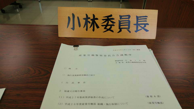 7時05分に新見を出発して、8時40分ごろ県議会棟へ入りました。スムーズなドライビングでした。9時から「委員長レク」。一休みの後、10時から「産業労働警察委員会」開会。