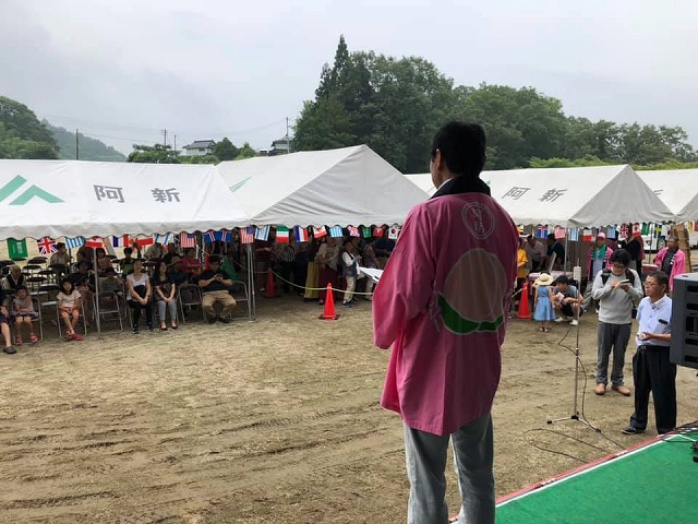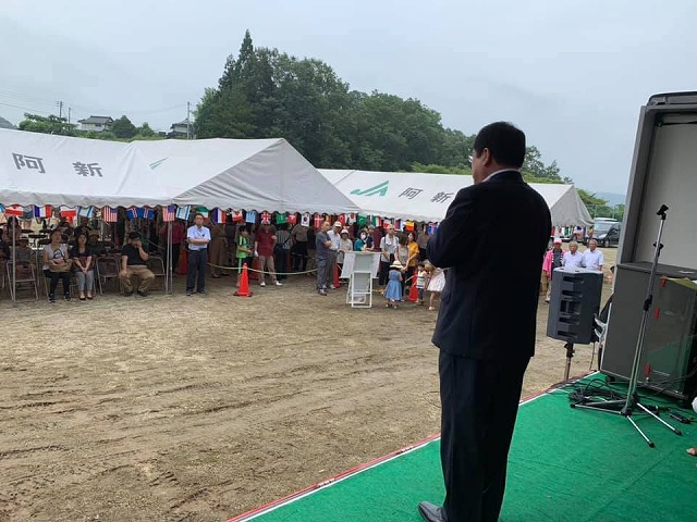 9時から、「草間カルスト山荘グラウンド」で開催された『第38回もも直売まつり』に出席しました。ご盛会おめでとうございます。一番乗りの姫路から来られたお客様は、6時30分から並んで下さったそうです。ありがとうございます。加藤代議士も駆け付けて下さいました。