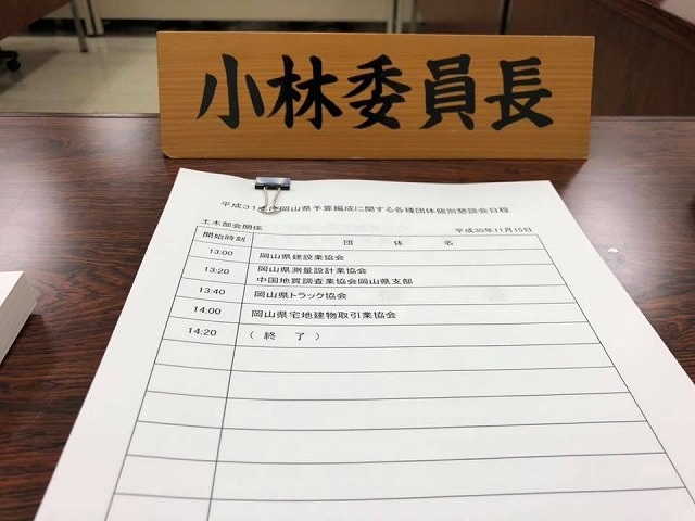 13時から、「自由民主党岡山県議団」の『平成31年度岡山県予算編成に関する各種団体個別懇談会』が開催されました。「土木部会」として、5団体の皆様から陳情・要望をお受けしました。ありがとうございました。