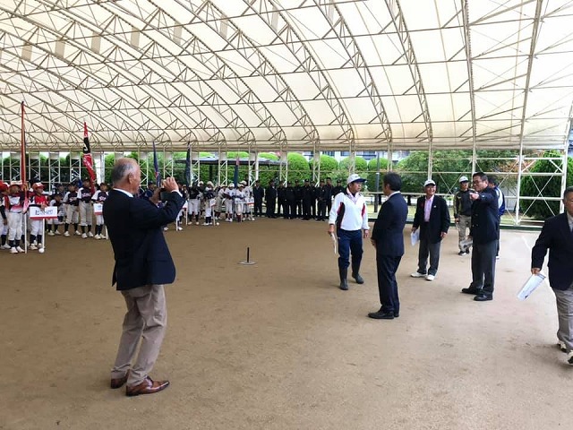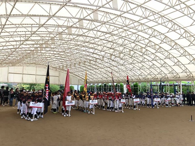 9時30分から、雨のため球場そばの屋根付きゲートボール場で開催された『第9回新見ピオーネカップ小学生男子ソフトボール大会開会式』に出席しました。中四国5県から出場して頂いています。ありがとうございます。一言、歓迎のご挨拶を申し上げました。