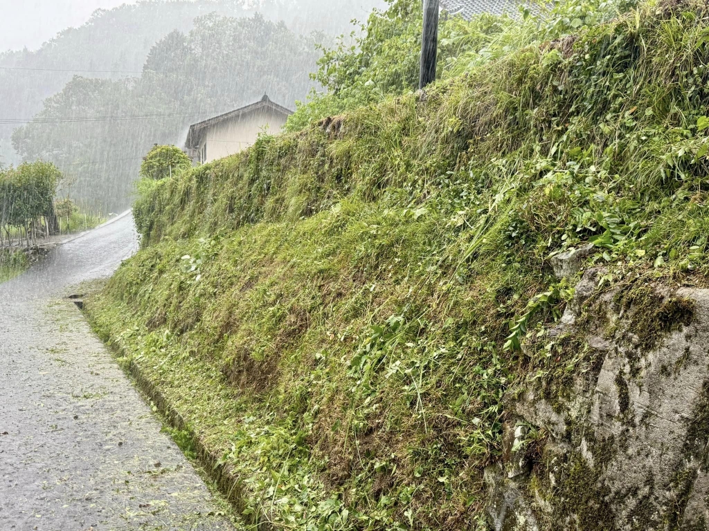 午後の「草刈り」。暑い、暑い!から、大粒の雨。シャワーだと思えば、まあいいか!作業終了です。