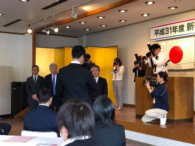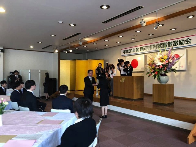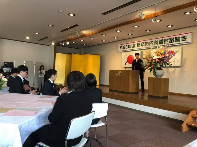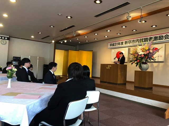 本日開催された『平成31年度新卒新見市内就職者激励会(新見商工会議所主催)』の様子です。おめでとうございます。