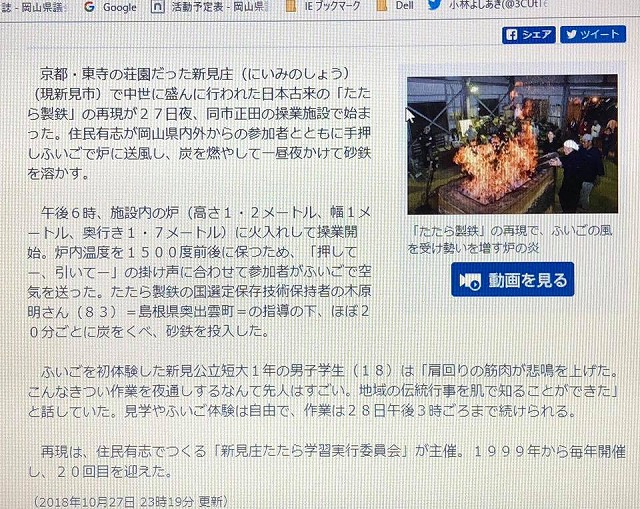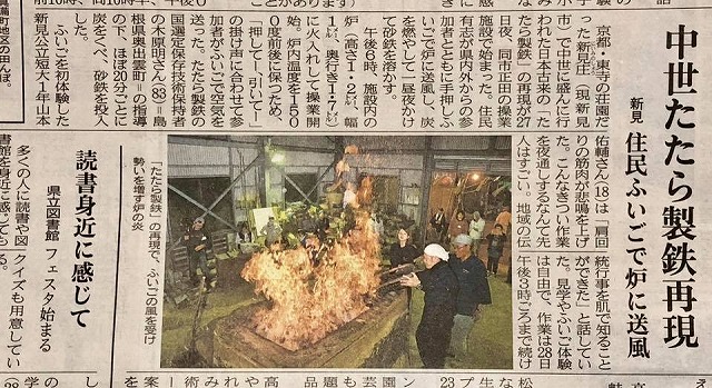 昨夕から始まった新見の「たたら製鉄」、中世を新聞で読むか、ネットで読むか。