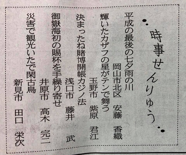 同級生田口栄次くん、125回目の掲載は山陽新聞「時事せんりゅう」です。おめでとうございます。