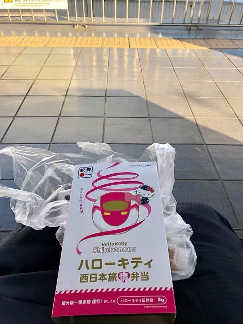 帰宅しました。今日は自宅を朝4時過ぎにスタートして岡山へ。ハローキティ弁当を買って、6時59分発の新幹線を待つ岡山駅であります。背広男はすでに汗まみれ。