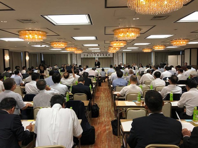 谷会長が議長となって議事に入りました。冒頭、中国5県代表幹事の岡山県の青野会長が、「平成30年7月豪雨災害からの早期復旧等に向けた緊急要望」を動議として提出しました。全会一致で可決されました。被災県の代表として立派に務めを果たされました。