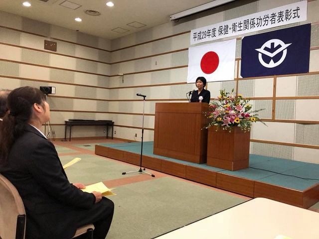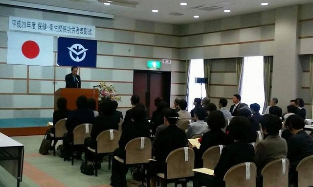 13時30分から、「高梁総合文化会館」で開催された『平成29年度岡山県備北保健所保健・衛生関係功労者表彰式』に出席しました。