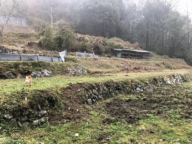 山でタヌキに遭遇。ふく、緊張。本日もよろしくお願いします。頑張りましょう。眠い、眠い。