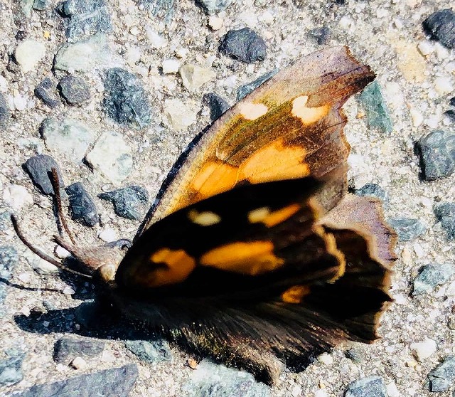 たくさんといえば、「蝶」が乱舞しています。聞くところによると「テングチョウ」とだそうで、全世界に10種類ほどいる中で、日本分布しているのは1種類だそうです。高梁から新見までの国道180号線沿いに大発生とのことです。