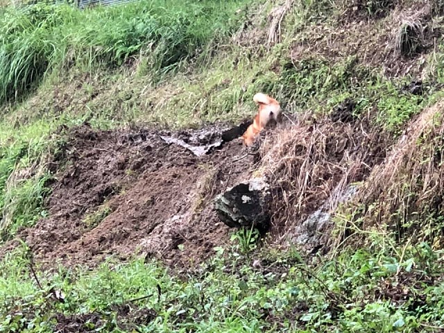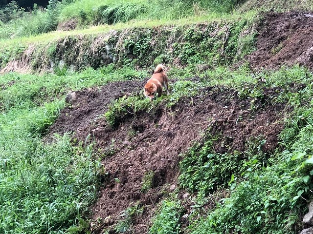 イノシシが傍若無人の振る舞いになってきました。少しは遠慮すればいいのに。家裏の休耕地は段々畑。土砂崩れではありません。小林ふく、抑止力にならず!です。