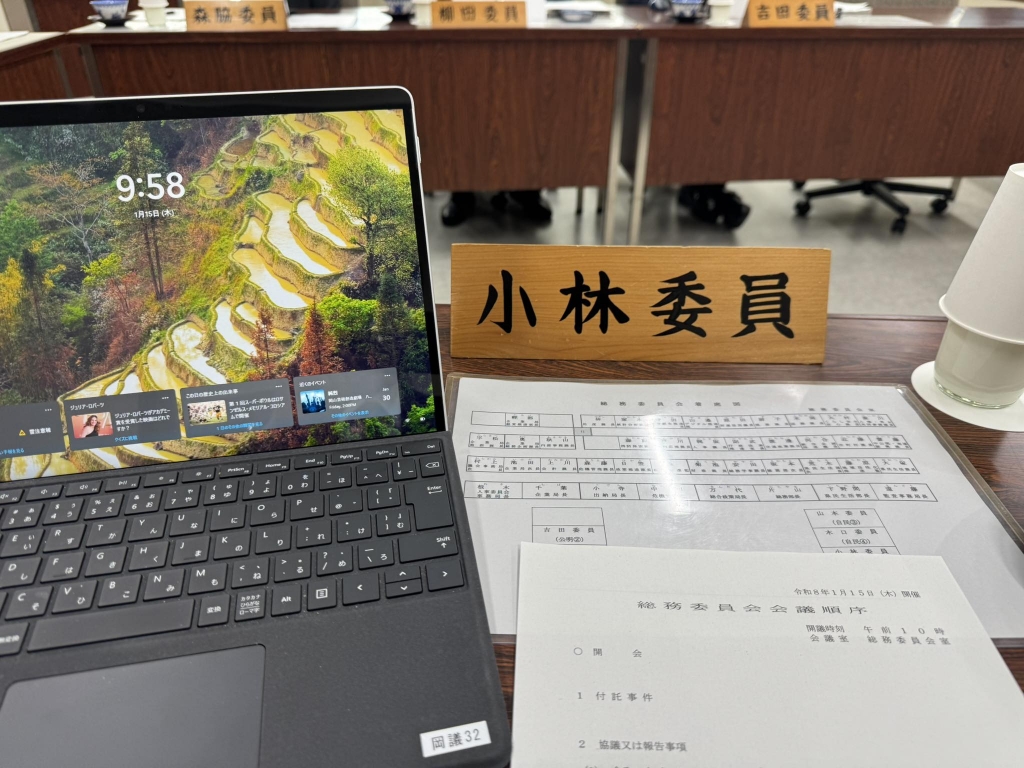 9時から、「協議」3件。10時から、県議会「総務委員会」に出席。令和8年度当初予算各部要求額(一般会計8194億9100万円)等について。昼休憩時間に「政友会」。衆議院議員選挙の話題。