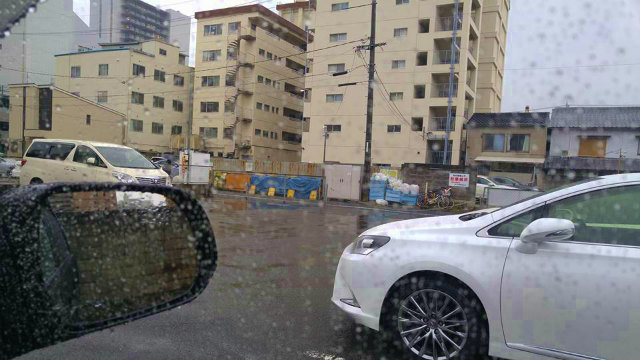 コンビニで傘を買って、岡山市内のホテルへ。雨脚が激しくなってきました。