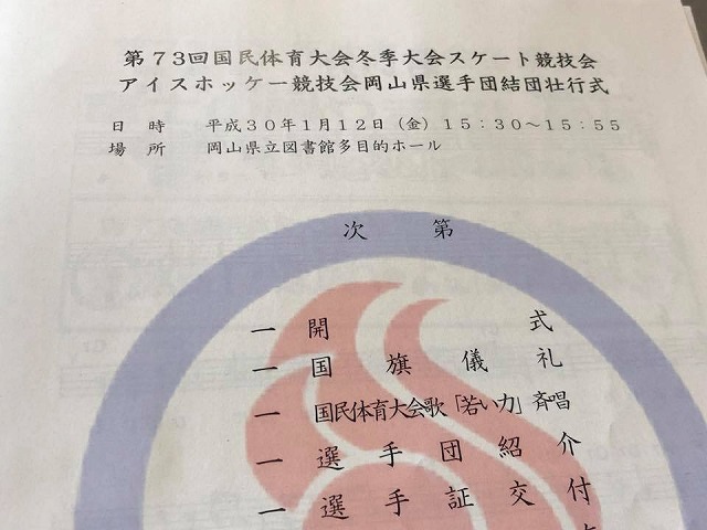 15時頃まで、県議会棟で要望や打ち合わせ。15時30分から、「県立図書館多目的ホール」で開催された『第73回国民体育大会冬季大会スケート競技会・アイスホッケー競技会岡山県選手団結団壮行式』に出席しました。尊敬する若林先輩とお会いできました。