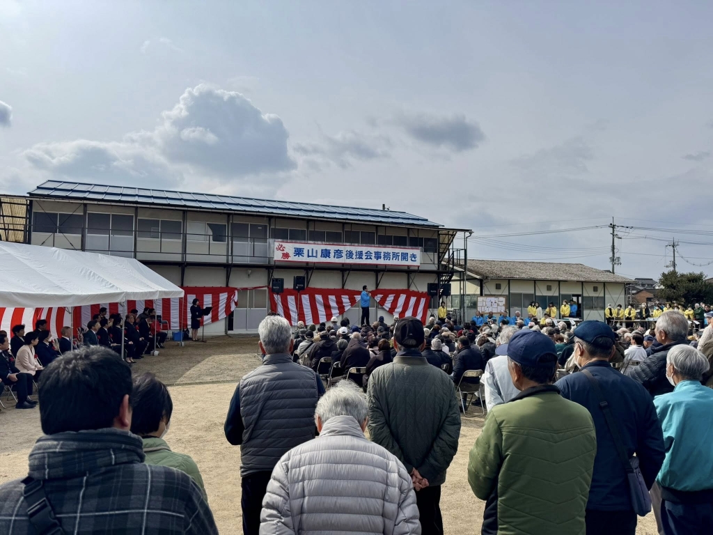 10時から、『栗山康彦後援会事務所開き』に、県議会の仲間と出席しました。ご開催おめでとうございます。多くの皆様がご出席でした。