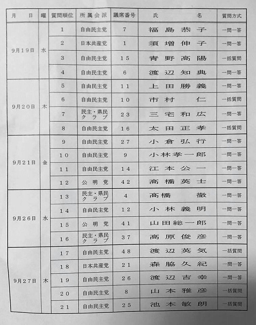 本日、『9月定例岡山県議会』の一般質問の日程が発表されました。小林義明の一般質問は、9月26日㈬の2番目、おおむね10時40分ごろからです。お時間がございましたら傍聴ください。