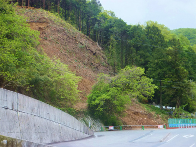 正田トンネル(仮称)の正田側の山肌の樹木が伐採されていました。