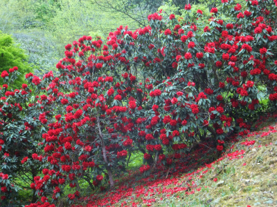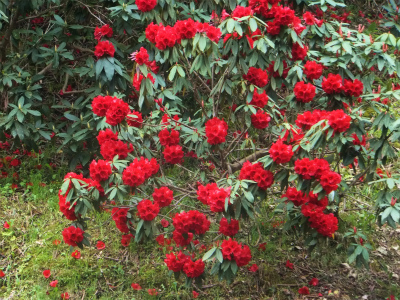 また、田植えも一斉に始まりました。山肌に変わった深紅の花が咲き