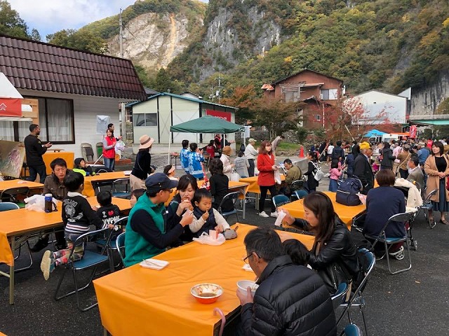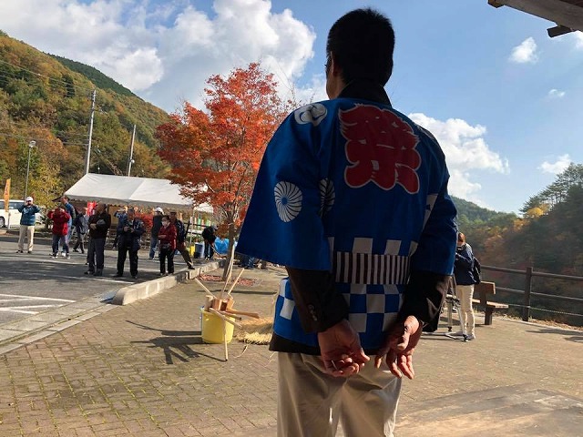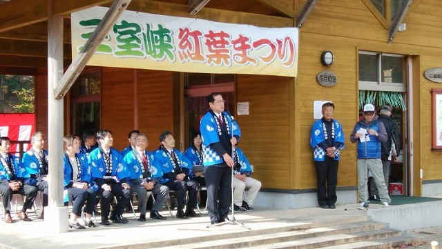 9時頃「哲多総合センター」を訪問し、『哲多文化展』に遅れて出席することのお詫びをさせて頂いた後、神郷油野へ移動して、10時から「三室総合案内所周辺」で開催さたれ『三室峡紅葉祭り』に出席しました。開会式で、一言ご挨拶の機会を頂きました。ありがとうございました。27戸、80名の三室地区の皆様の心のこもったお出迎えであります。しっかり応援して行きたい。