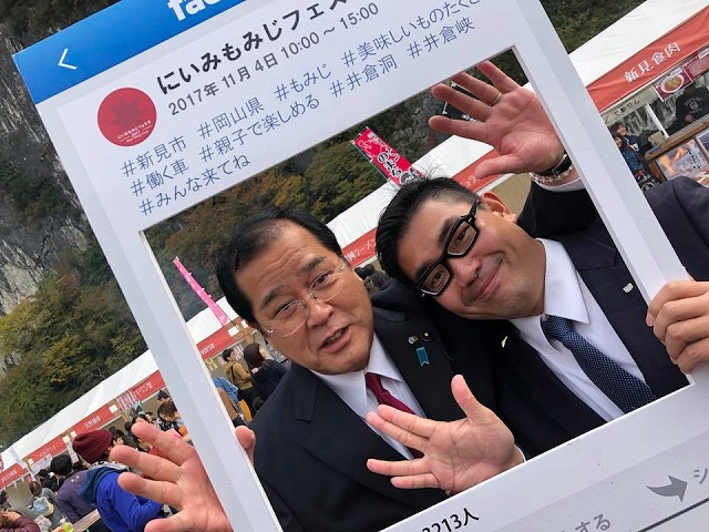 続いて、「井倉洞周辺」で開催された『にいみもみじフェスタ2017』に出席しました。多くの皆様で賑わっていました。素晴らしいなぁ。若い皆さんのセンスがいいですね。
