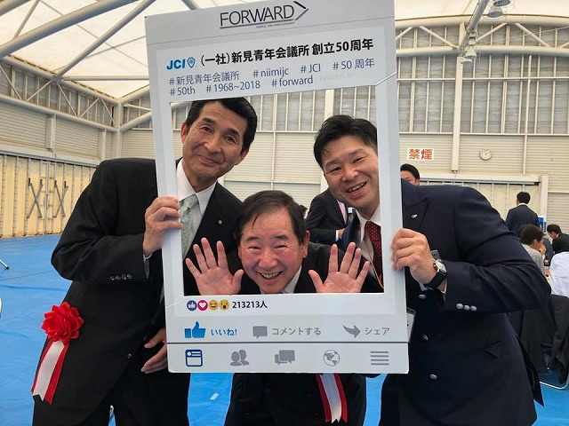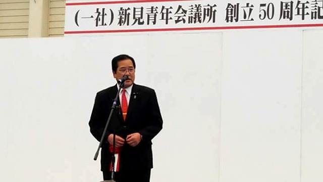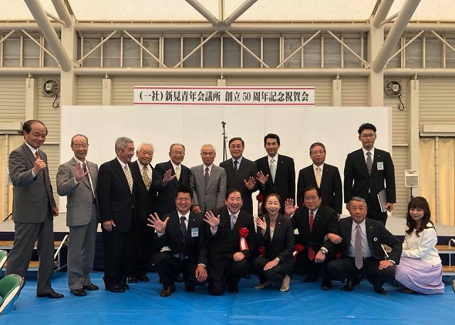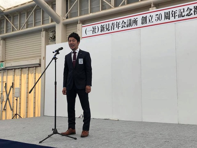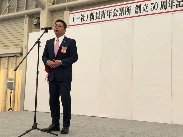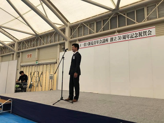 「新見市憩いとふれあいの公園」にある「屋内ゲートボール場」に移動して、13時30分から『一般社団法人新見青年会議所創立50周年記念祝賀会』に出席しました。来賓ご挨拶の機会を頂きました。ありがとうございました。