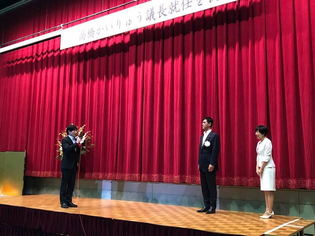 11時から、「サントピア岡山総社」で開催された『高橋戒隆岡山県議会議長就任祝賀会』に出席しました。おめでとうございます。