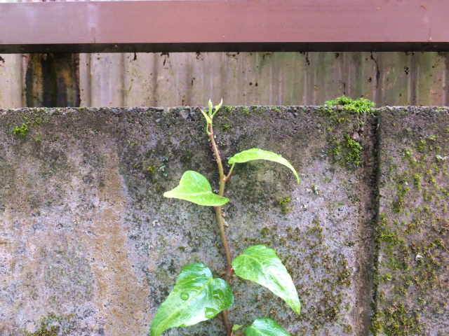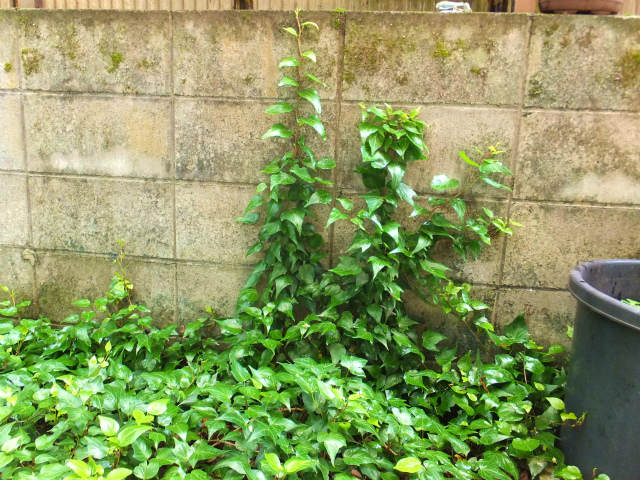 我が家の裏庭の「ツタ」くん、ついにやりました。到達です。
