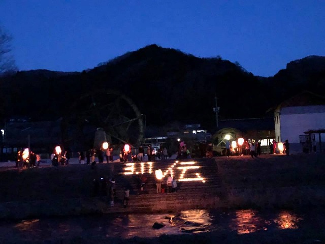 17時30分から、「神郷親子孫水車周辺」で開催された『東日本大震災追悼セレモニー』に出席しました。初めに「追悼コンサート」、それからキャンドルとランタン。