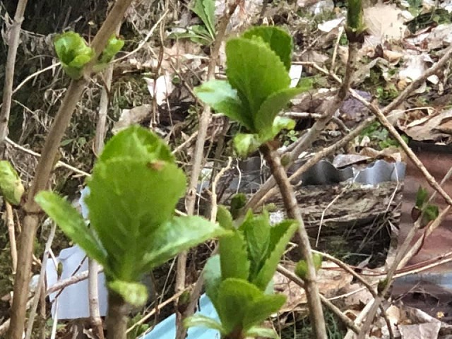 紫陽花の若葉が「暖かくなるよ」と言っているよなう「朝のお散歩」です。本日もよろしくお願いします。頑張りましょう。