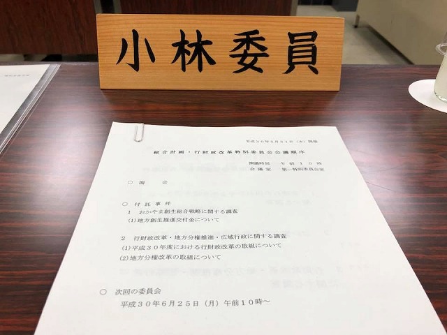 10時から、『総合計画・行財政改革特別委員会』に出席しました。続いて午後から、ご相談等々で県庁内、議会内、図書室をウロウロ。