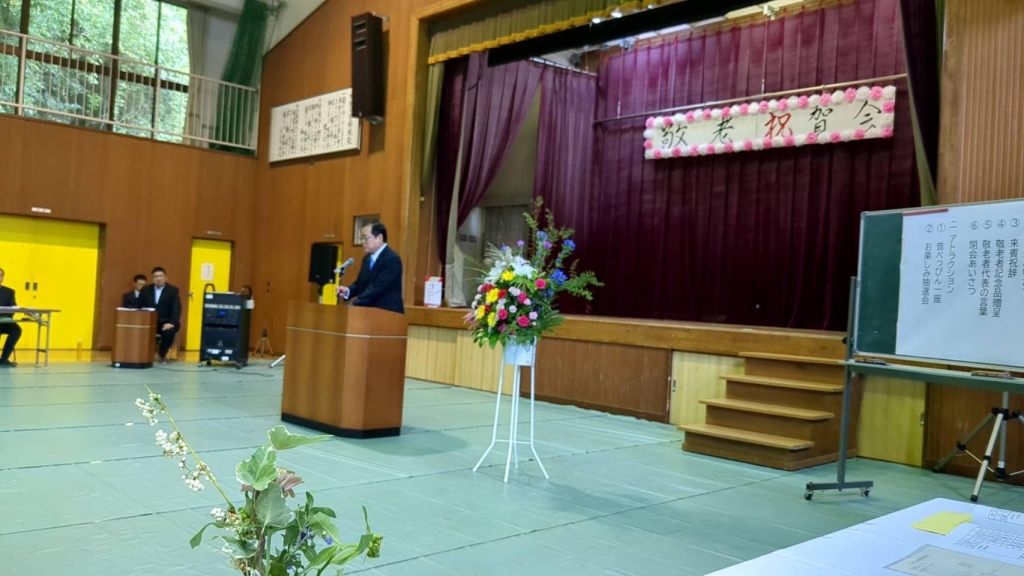 新見市大佐町の「布瀬地区敬老会」に出席しました。ご開催おめでとうございます。敬老者の皆様、おめでとうございます。心温まる敬老会でした。