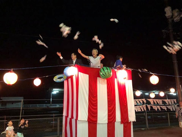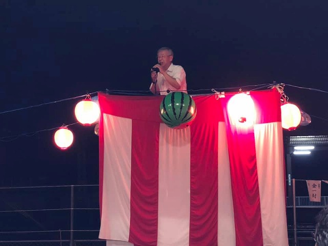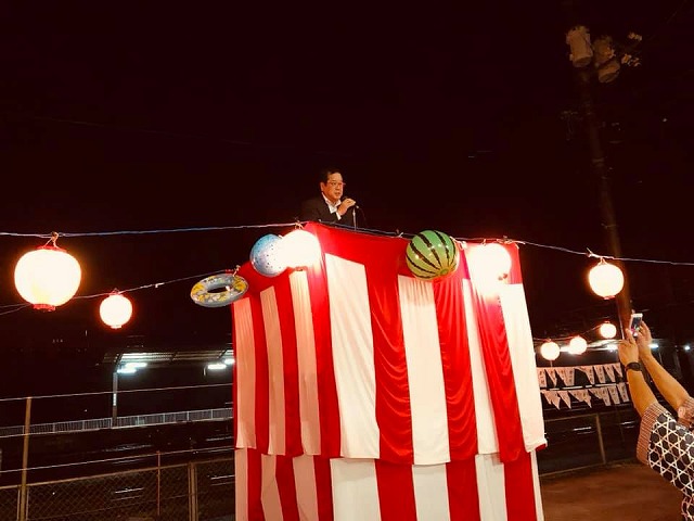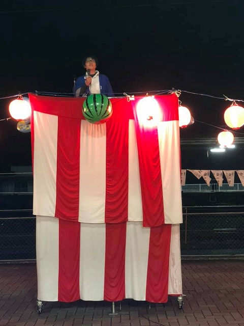 続いて、『新見駅前盆踊り大会』に出席しました。ご盛会おめでとうございました。新見駅前を明るく!です。