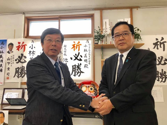 午前中、小林よしあき後援会事務所でした。遠路岡山市から、岡山県専修学校各種学校振興会の平田眞一会長先生が事務所を激励訪問してくださいました。ありがとうございました。