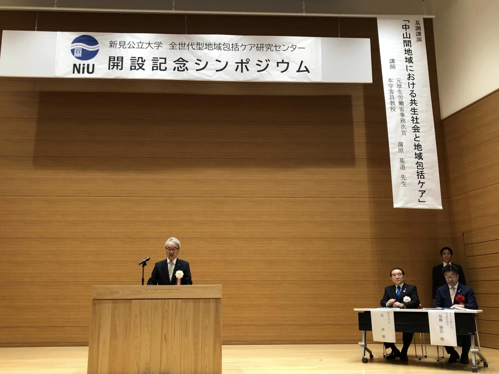 13時30分から、「新見公立大学全世代型地域包括ケア研究センター開設記念シンポジウム」に出席しました。加藤勝信厚生労働大臣、ご出席でした。